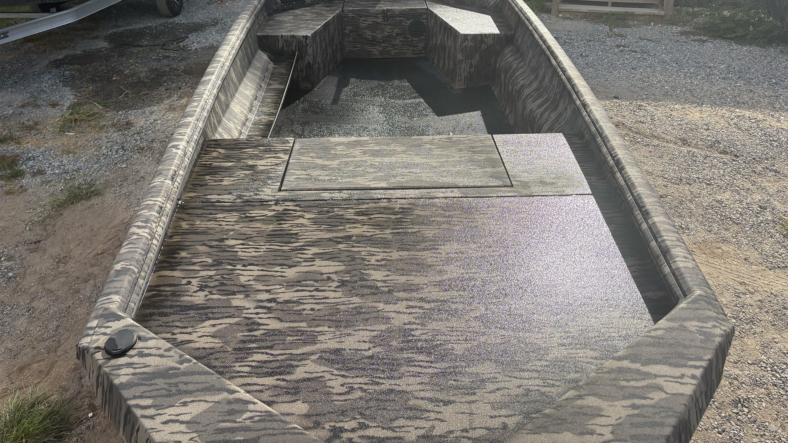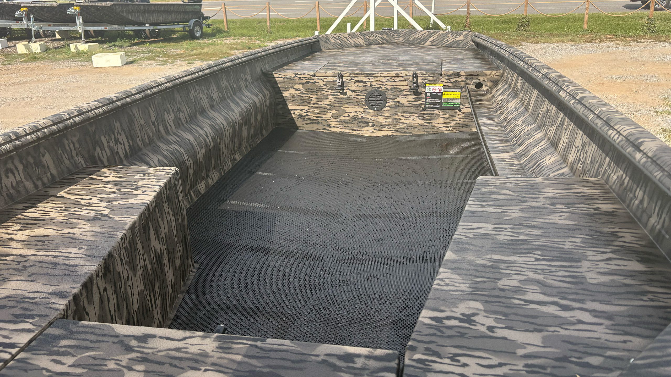 The VJST is a step transom boat with an 8°, 100-gauge hull and lateral C-channel ribs. It also features the shallow water basic flotation. This makes it a lighter option if you don’t need the extra strength of the I-Beam longitudinal ribs used in our other models.