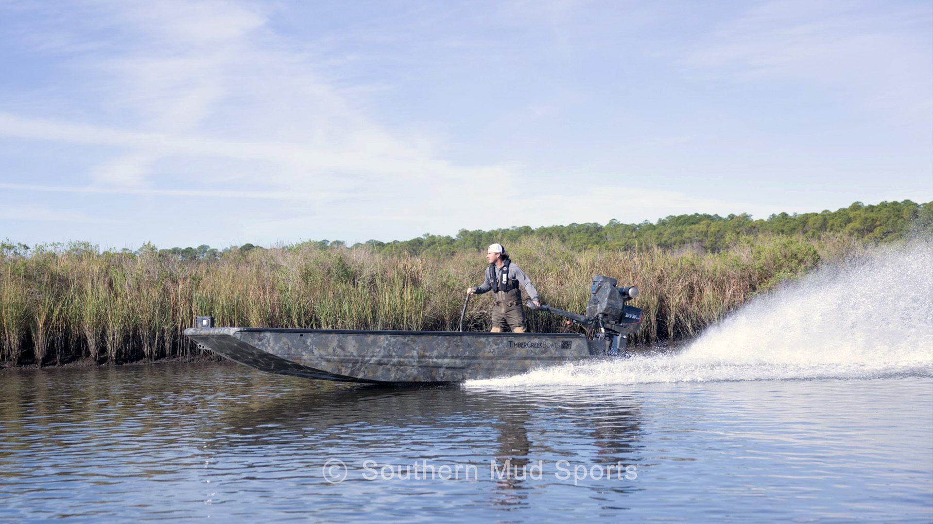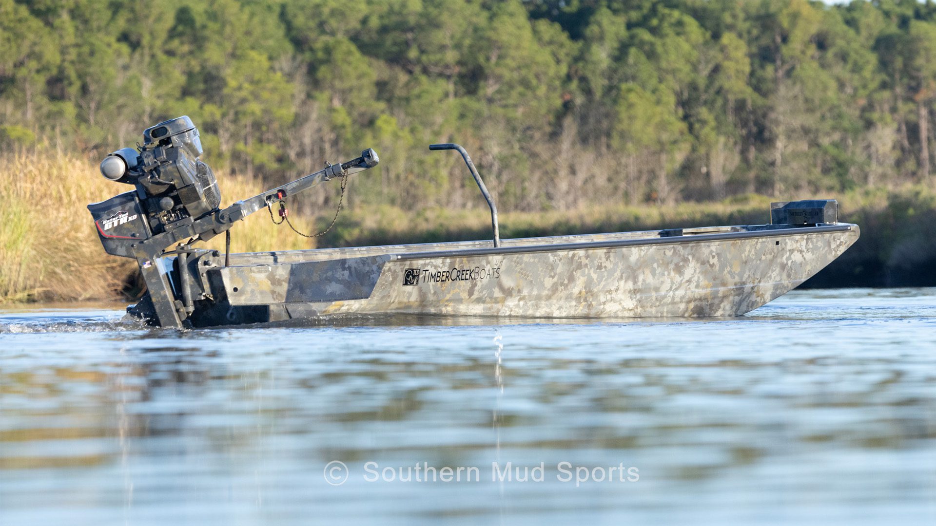 Bringing a legend to a Southern Mud Sports near you. Building boats at a production level with the standard Timber Creek is known for. We have all outboards available, and only use Gator Tail for our mud motors. Select your camo, seadek, stock/turbo/build, JL stereo and Southern Light LED package to stand out anywhere in North America. Let’s get started and join the Timber Creek family with perfection, experience and class. We make a top shelf hunting and fishing machine. Simple design builds we talk you through every step. We customize your boat the way you want it designed. Once completed, we photo your build get it approved and then you are ready for pick up at a Southern Mud Sports near you. Also, we offer shrink wrap and can have it delivered to your door step.